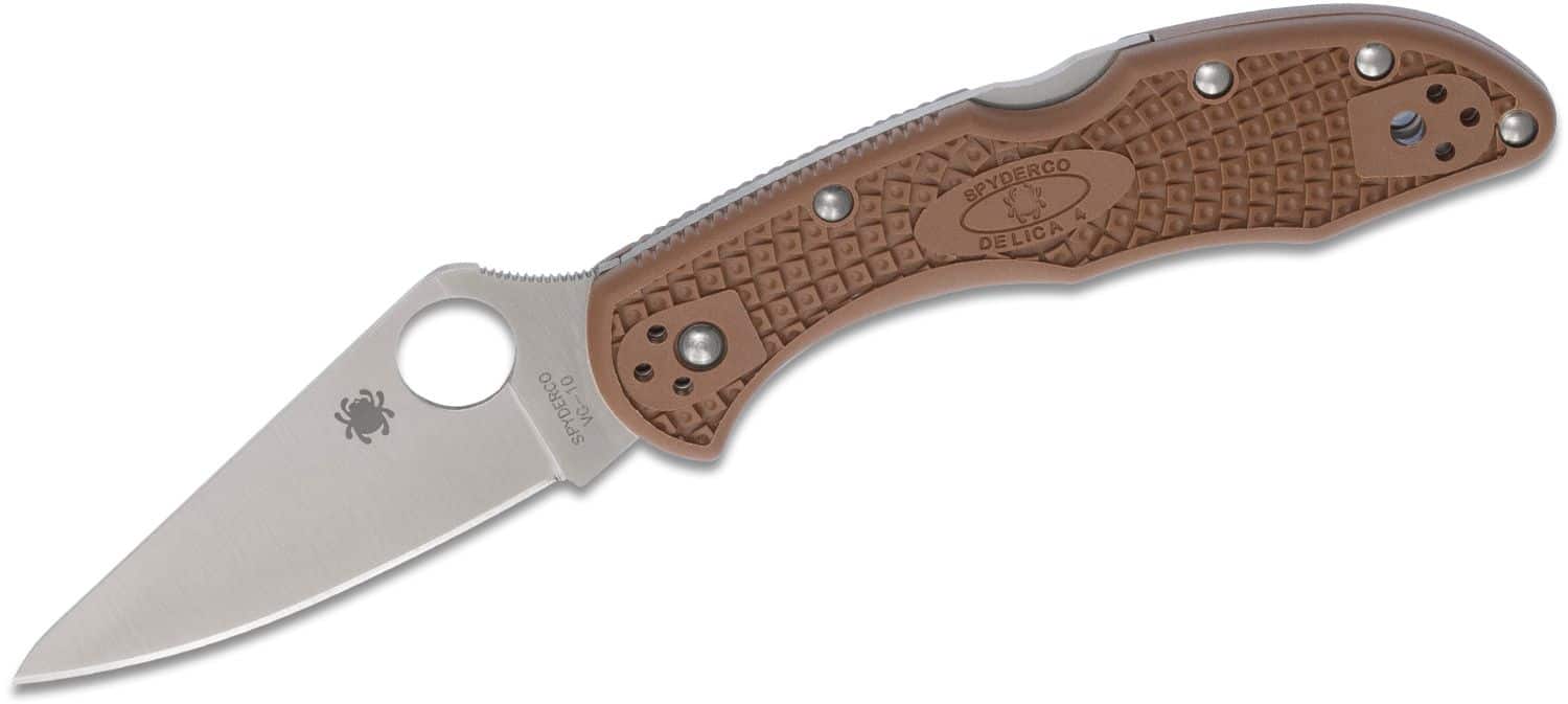 SPYDERCO C11FPBN DELICA 4 FLAT GROUND BROWN FRN HANDLE