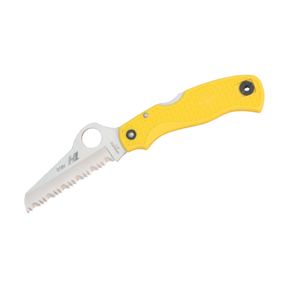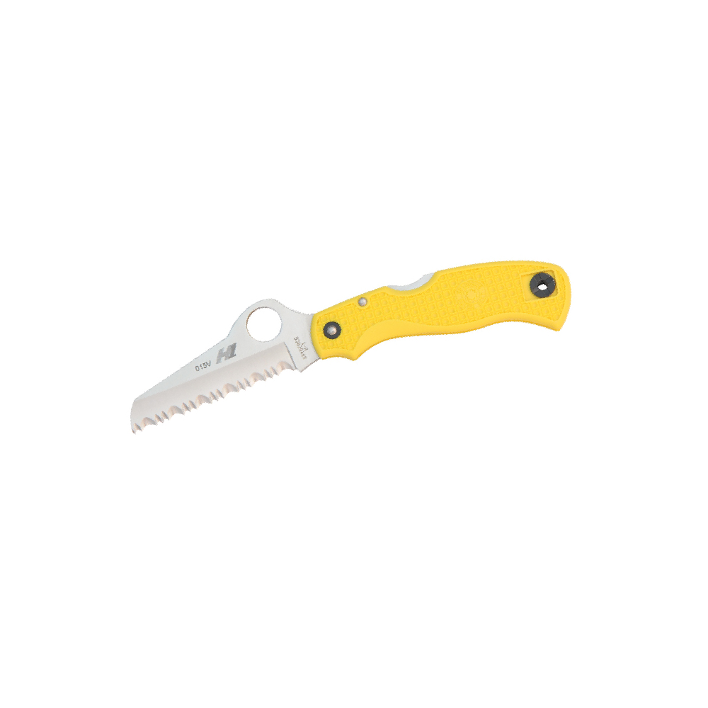 SPYDERCO SAVER SALT C118SYL are long favored by seafarers and the design has since been embraced by rescue workers, EMT’s and ranchers-anyone cutting around flesh in an emergency. Now available in a rustproof version, the Saver Salt is a modified Rescue made with state of the art non-rusting H1 steel.Yet another addition to Spyderco’s non-rusting Salt Series knife line. The blades found on all Salt Series models are made with an alloy called H-1. H-1 is non-rusting premium-performance steel that’s raising interest in fishing, boating and diving circles.