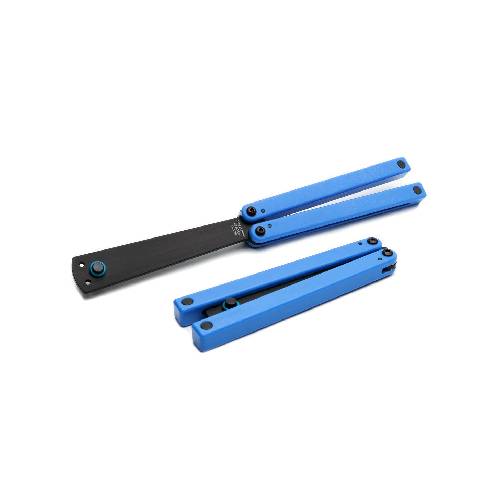 Both the Squiddy-B and Squiddy-U are made from Acetal. Acetal is an engineering thermoplastic used in precision parts requiring high stiffness, low friction, and excellent dimensional stability making it great for a balisong trainer. This trainer is safe, legal everywhere (including airplanes), and perfect for young folks whose parents don’t want them shredding their new sofa with a sharp butterfly knife.
