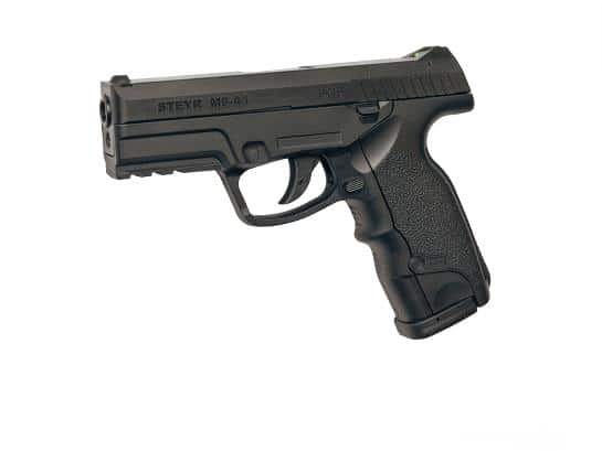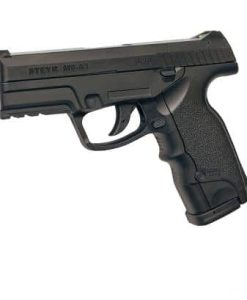 This pistol is fully licensed by Steyr Mannlicher, Austria. The ergonomic grip, illuminated rear sight, and waiver/Picatinny accessory rail make this pistol very comfortable with a lot of external upgrade possibilities. The 12g Co2 capsule is stored in the grip and is easily changed. With 140 m/s (460fps) this is a very hard hitting pistol.
