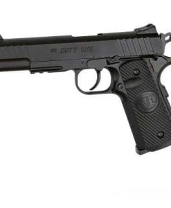 This Blowback version DUTY ONE is fully licensed by the famous high-end small arms manufacturer STI® International, based in Texas, USA. The 4.5mm (.177) steel BB’s are stored in the drop-out magazine and powered by a 12g CO2 cartridge which is cleverly kept away in the pistol grip thanks to the easy load system. The airgun is semi-automatic and based on the classic model 1911 but STI® has upgraded and changed the design and many of the functions. The frame has an integrated front weaver rail for mounting light and laser. The grip is marked with an STI® logo and the high rise beaver-tail grip secures a perfect hold on the pistol. Furthermore, the pistol has a unique serial number. The metal slide has beautiful authentic STI® markings.