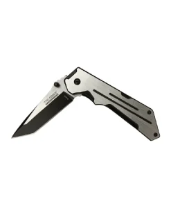 The Tac-Force Evolution TFE-A017-S Spring Assisted Knife is a high-performance tactical knife designed for precision, durability, and rapid deployment. Featuring a 3.5-inch tanto fine edge blade, this knife is made from 8Cr13 stainless steel with a black and brushed finish, offering superior edge retention and corrosion resistance. The stainless steel handle ensures a solid grip and long-lasting durability, while the liner lock mechanism provides secure blade retention during use. With dual thumb studs for quick one-handed opening and a pocket clip for easy carry, this knife is a reliable companion for tactical, survival, and everyday use.