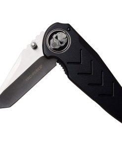 The TF-974BK Tac-Force Manual Folding Knife is a compact and durable folding knife, designed for everyday carry and tactical applications. With a 2.75-inch tanto fine edge blade made from 3Cr13 stainless steel, it offers excellent sharpness and durability. The aluminum handle provides a lightweight yet sturdy grip, while the frame lock mechanism ensures secure blade deployment. This knife also features a ball bearing pivot for smooth opening and a pocket clip for easy carry.
