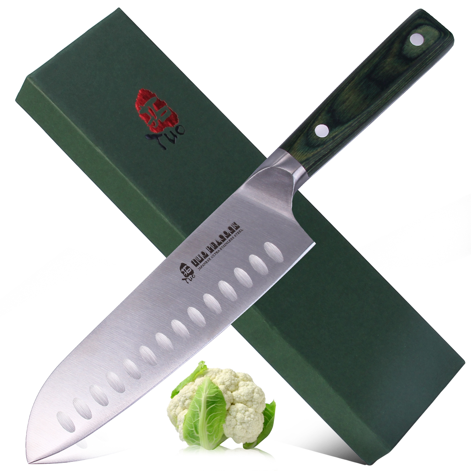 TUO Cutlery Peacock Series Santoku Knife 7″ Green Pakkawood Handle Japanese Ultra Stainless Steel