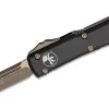 The Ultratech, will forever set the standard for all out-the-front knives. Ultratech is Microtech’s original dual action out-the-front knife and has been the foundation of their entire OTF line. Over the years, it has gone through several modifications, each time becoming more efficient and reliable. This version has the improved contoured handle with texturing thumb slide for more positive purchase. The Ultratech’s spring remains in an “at rest” position at all times except when deployed. This ensures that the compressed spring will not become fatigued, assuring users that when the knife is fired, it will operate effectively. Ultratech can take many different forms; it can be topped with a standard machined aluminium top or a piece of carbon fibre. The Ultratech’s light weight, one handed open and close action, slim shape, and scalpel sharp blade make it a one of a kind knife, only available through Microtech. This knife has proven time and again that it can withstand any obstacle. Only time will tell what the next step will be for the Ultratech series.