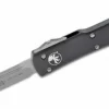 This Ultratech features a drop point blade with a stonewash finish and a partially serrated edge. It has a contoured, black anodized 6061-T6 aluminum handle with a bead blasted pocket clip, glass breaker, and stainless steel hardware.