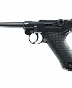 Umarex now offers the P.08, a CO2-powered version of the famous semi-automatic pistol for recreational shooting. The pistol’s rugged all-metal design, easy handling and high energy make it ideal for plinking. Its removable magazine holds 21 4.5 mm steel BBs. The safety is positioned exactly as in the original.