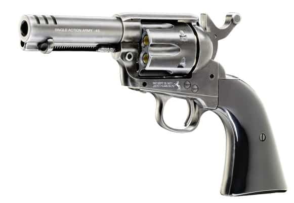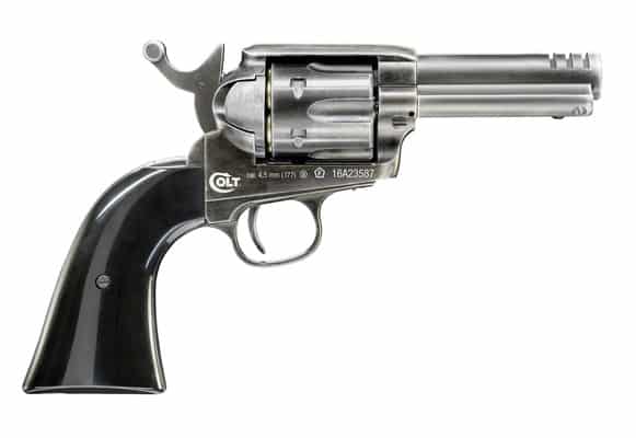 This version of the famed Colt Peacemaker is perfect for specialists and quick-draw experts. Umarex Air Pistol Colt SAA has a short 3.5-inch barrel and comes without a sight, which would only get in the way at short distances. The specially shaped hammer can even be “fanned” with your second hand. In terms of mechanism and function, it is otherwise the same as the other Colt SAA revolvers, with a CO2 cylinder concealed in the grip and six nickel-plated loading shells, each of which takes a 4.5 mm steel BB.