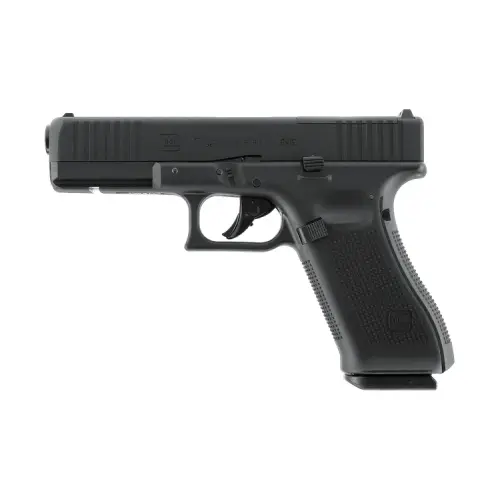 The slide of the GLOCK 17 Gen5 makes an authentic impression with a strong blowback. The Modular Optic System (MOS), an integrated mounting attachment for point sights, extends the range of possible uses.