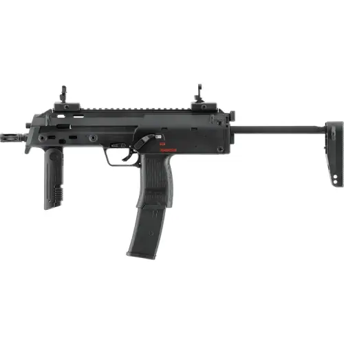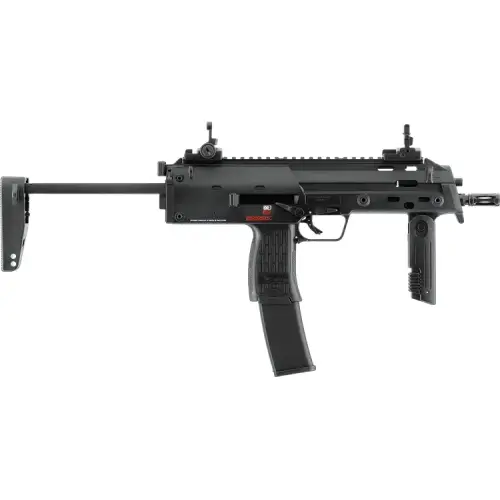 rear sight (adjustable for windage) and front sight (adjustable for elevation) can be folded