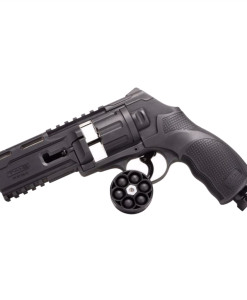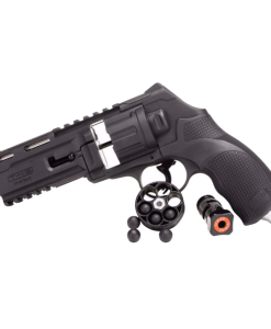 The TR50 Gen2 uses a 6-round rotary magazine compatible with various .50 caliber rounds for versatile training and defense. Its redesigned cylinder lock and intuitive controls ensure smooth handling. Safety is enhanced with an automatic trigger safety, while top and under-barrel Picatinny rails allow mounting of optics and accessories. It’s fully compatible with T4E accessories for easy customization.