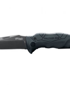 The Umarex Walther Survival Folder Pro Knife comes with an attached sharpener and a fire starter that quickly generates sparks in combination with the blade made of 12C27 Sandvik steel. The knife blade has a special blunt area on the spine for this purpose. A saw blade with an alternating set helps in cutting branches and other material.