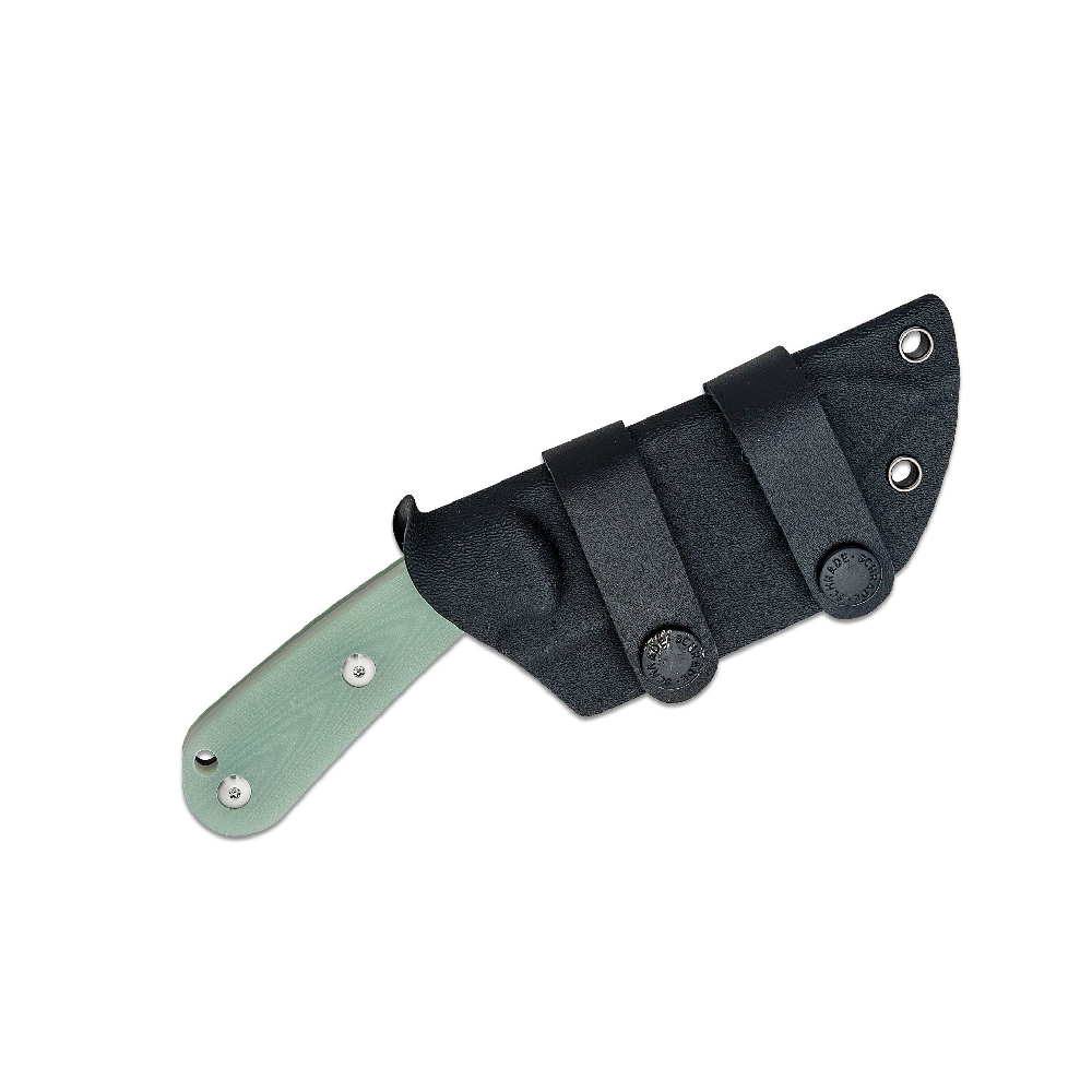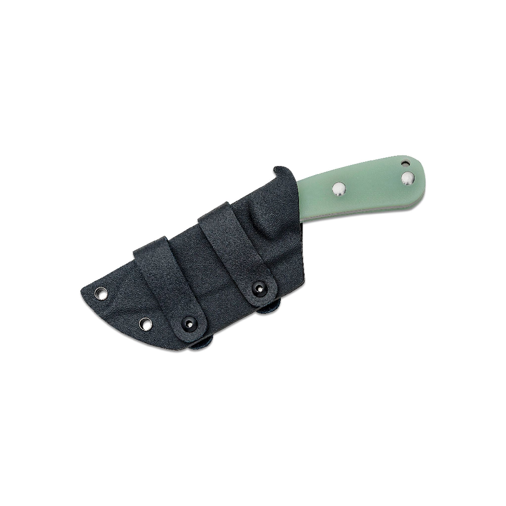 Crafted in collaboration with custom designer Azo, the Baby Fixed Blade boasts organic curves and an ergonomic profile that fit your hand like a second skin. The translucent jade G10 handle isn’t just eye-catching—it’s engineered for unbeatable grip, even when wet or gloved, so you can maintain total control during the most demanding tasks. At just 4.16 ounces, it disappears on your belt or pack, yet stands ready to tackle whatever the wilderness throws your way.