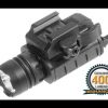 UTG GEN 2 400 LUMEN PISTOL FLASHLIGHT LT-ELP123R-A , uniquely designed integrated Reflector & bulb with preset flood focus and enhanced 400 genuine lumen power upgrade and extended run time Integral low profile Picatinny mounting deck prevents pistol light from snagging on holsters and other gear, smoother unholstering and holstering