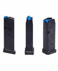 The UTG Polymer Glock Magazine 15 Round 9MM – RBT-GL915 is a durable and reliable magazine designed for optimal performance with Glock® 19, Glock® 26, and various pistol caliber carbines. Constructed from impact-resistant glass fiber-reinforced polymer, this magazine ensures long-lasting durability in various conditions. The anti-tilt high-visibility blue follower and stainless steel spring provide smooth and reliable feeding, making it an excellent choice for tactical and recreational shooting.