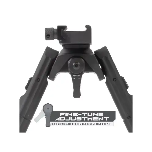- Tunable Tension Adjustment Applies the Desired Amount of Tension to the Bipod’s 360° Panning & 15° Left, Right, Forward, and Rearward Tilt