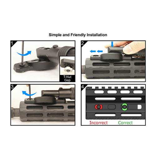 - Directly attaches to M-LOK handguards at the 3 and 9 o’clock positions
