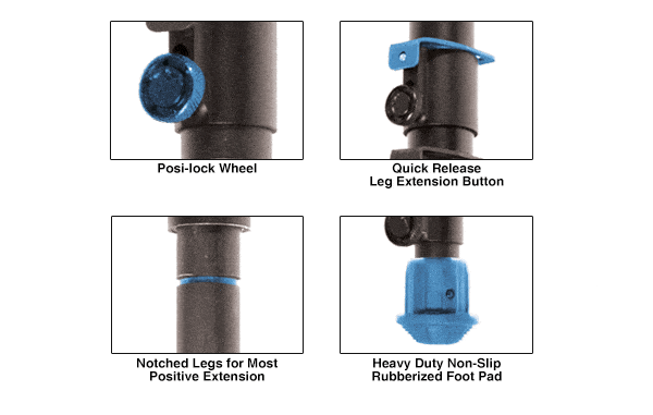 - Precision Adjustment: Fully adjustable leg extensions with secure locking thumb wheels.