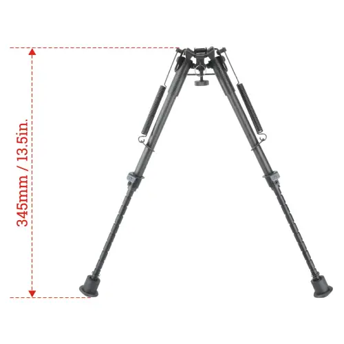 Height Adjustable: Telescoping legs extend from 230mm (9”) to 345mm (13.5”) with 10 locking levels, adapting to a wide range of shooting positions.