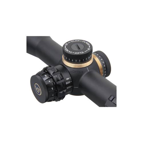 - Adjustments: 1/4 MOA turrets, 100 clicks/25 MOA per rev, 60 MOA windage & elevation