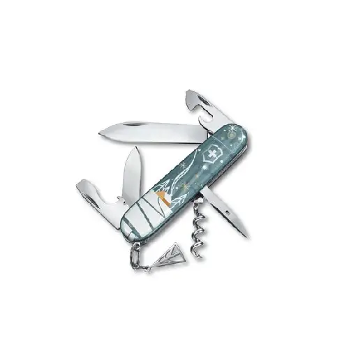 This 12-function tool, featuring stainless steel blades and essential everyday tools, offers all the functionality expected from Victorinox’s renowned craftsmanship. The fir tree charm can be attached to the key ring on the knife, or worn separately as a unique fashion accessory on a bracelet, necklace, or other items.