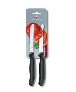 The Victorinox Swiss Classic Knife V6.7833.B is part of the Swiss Classic range, featuring the company’s renowned ergonomic injection-moulded nylon handles. These handles are designed to rest comfortably in the hand, providing a secure grip and a pleasurable cutting experience. The high-carbon stainless steel blade maintains an exceptionally sharp edge, ideal for precision tasks. This tomato knife is also easily resharpened for long-term use.