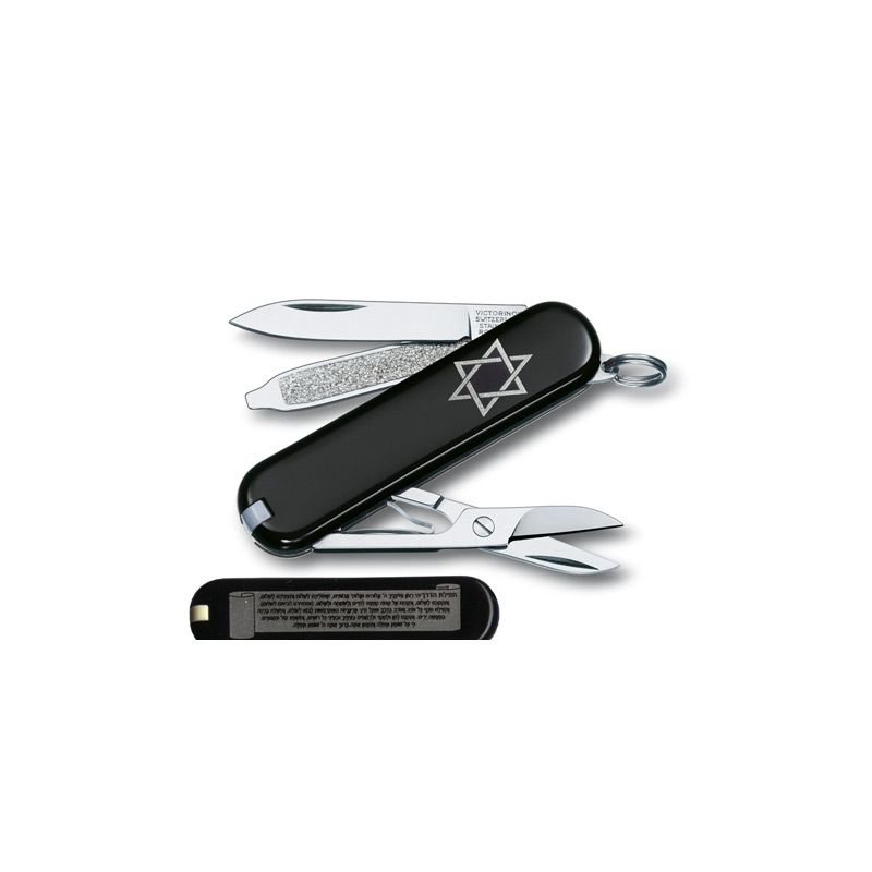 The Victorinox Classic SD Star of David V0.6223.03R2 combines functionality with elegance, featuring seven essential tools. This compact multi-tool includes indispensable scissors, ideal for quick manicures or trimming loose threads. The sleek black handle adorned with the Star of David symbol adds a unique touch to this practical everyday companion. Whether you’re looking for a reliable tool for everyday tasks or a special collectible, this Victorinox Swiss Army Knife is both functional and stylish.