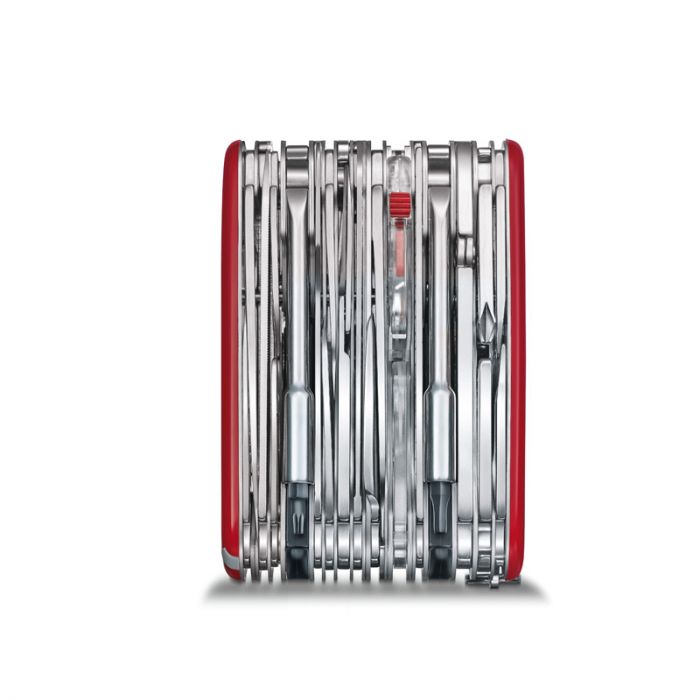 | Tools | 1. Large Blade 2. Large Blade w/Wavy Edge 3. Small Blade 4. Pruning Blade 5. Electrician’s Blade w/ 6. Wire Scraper 7. Corkscrew 8. Mini Screwdriver 1.5 mm 9. Can Opener w/ 10. Screwdriver 3 mm 11. Bottle Opener w/ 12. Can Opener 13. Screwdriver 5 mm 14. Wire Stripper 15. Bottle Opener w/ 16. Screwdriver 6 mm 17. Wire Stripper 18. Screwdriver 2.5 mm 19. Screwdriver 2.5 mm 20. Reamer, Punch & Sewing Awl 21. Reamer, Punch 22. Scissors 23. Wood Saw 24. Nail File w/ |