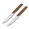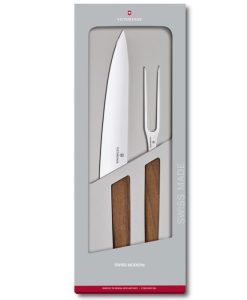 Part of the Swiss Modern Collection, the Victorinox V6.9091.2 set features an elegant design in wear-resistant stainless steel. Each knife handle is uniquely crafted from richly grained European Walnut Wood. The ergonomically shaped handle ensures ultimate comfort, bringing a contemporary feel to mankind’s oldest and most important tool.