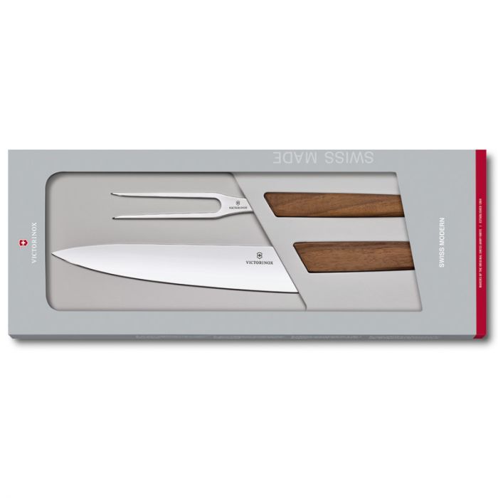 Elegant and ergonomically honed for ultimate comfort, the Victorinox V6.9091.2 Swiss Carving Set is the perfect carving combination for smooth, effortless, and precise slices. Its razor-sharp blade is complemented by an ergonomic fork for easy control while carving or serving meat.