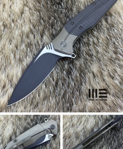 The WE 707C is a masterfully designed folding knife that combines a bronze titanium handle with a carbon fiber inlay, creating a striking visual appeal and exceptional durability. The black stonewash satin blade, made from Bohler M390 stainless steel, offers superior edge retention and corrosion resistance, making the WE 707C a reliable choice for both everyday carry and tactical use. With a full-size 3.625-inch blade and a comfortable handle profile, this knife is designed for optimal performance in any situation.