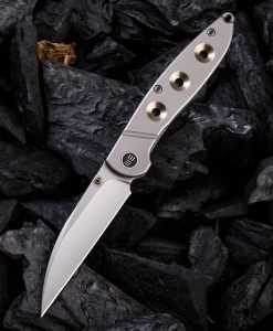 The WE 908A Golden Anodized Holes Grey TI Handle Refined Stonewash knife showcases a perfect blend of functionality and elegance. With an overall length of 6.73” (171mm), the WE 908A Golden is crafted for everyday versatility, making it an essential addition to your collection. The blade, made from premium CPM S35VN steel, measures 2.92” (74.2mm) and is designed to offer exceptional edge retention and corrosion resistance. This makes the WE 908A Golden a reliable choice for any cutting task, enhanced by a refined stonewash finish that not only improves durability but also adds to its striking appearance.