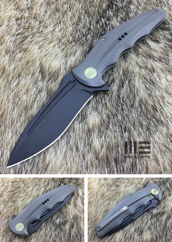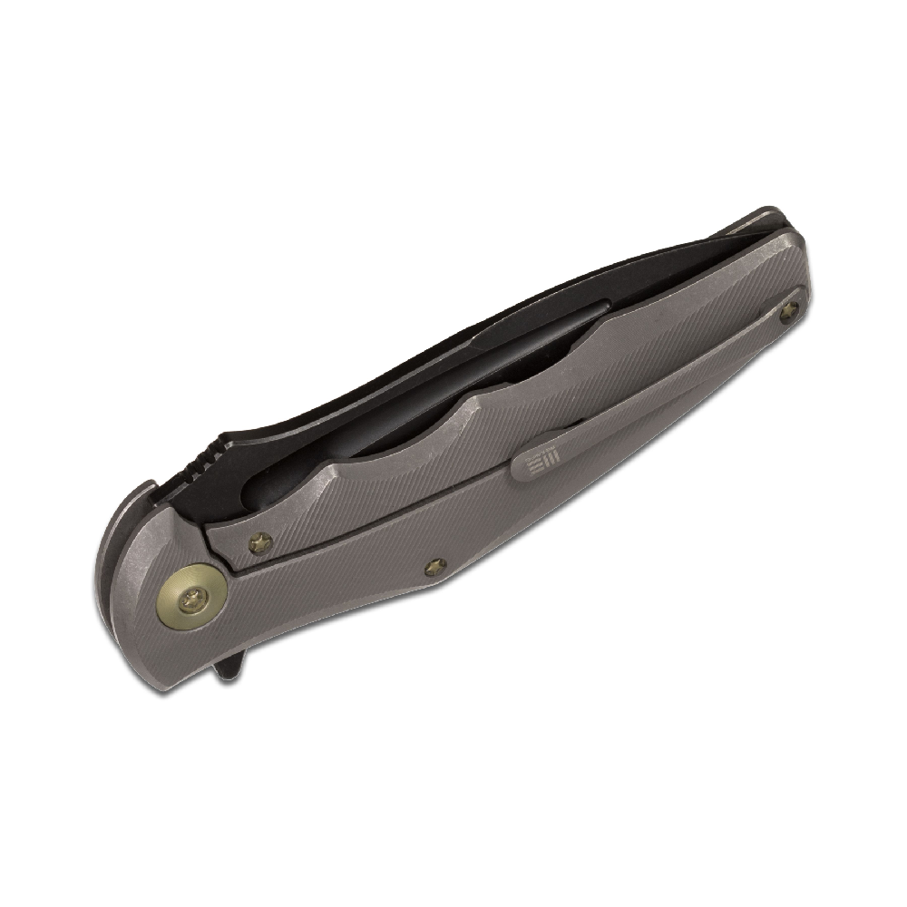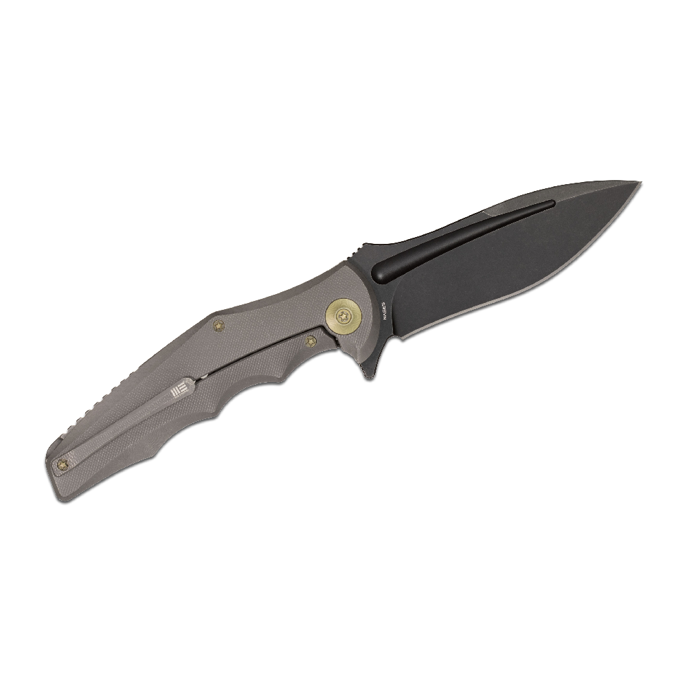 We Knife 608E Grey Handle,Drop Point Black Stonewash Blade Knife