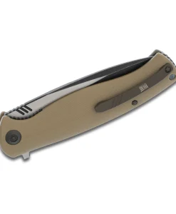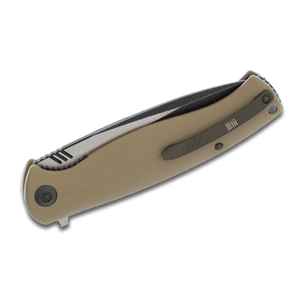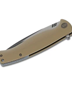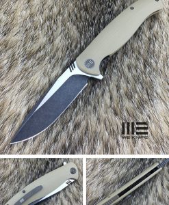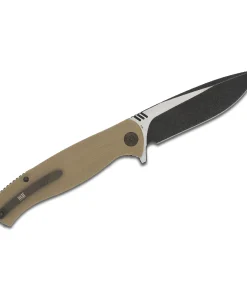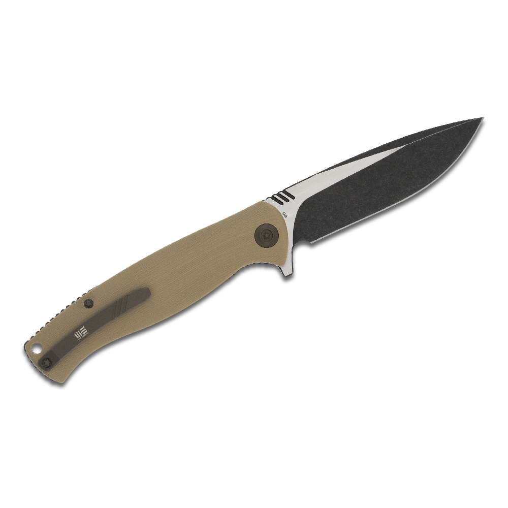 We Knife 703C Tan G10 Handle Black Stonewash,Satin Blade Knife
