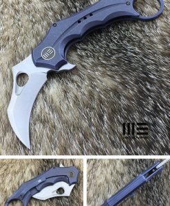 The WE Knife 708B is a beautifully crafted folding knife featuring a blue titanium handle with a stonewash finish. This knife is designed for those who appreciate both aesthetics and functionality. The blade is made from CPM S35VN steel, known for its exceptional edge retention and durability. With an overall length of 7.9 inches, the WE Knife 708B is a perfect choice for everyday carry, offering a balance of portability and performance. The WE Knife Team has meticulously designed this knife to meet the needs of discerning users who demand high quality and innovative design.