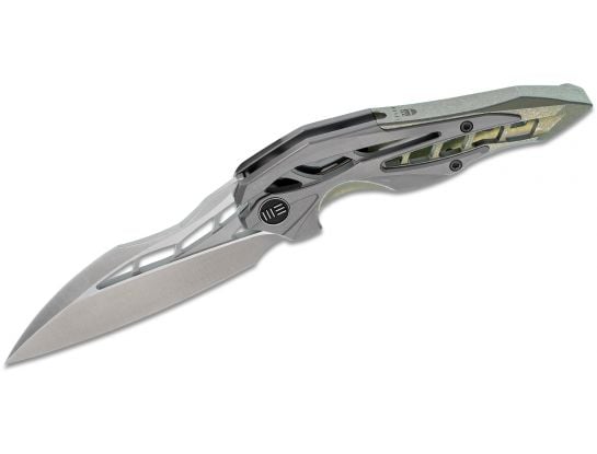 - Handle: Green integral 6Al4V titanium frame with gray titanium scales – striking dual-tone strength