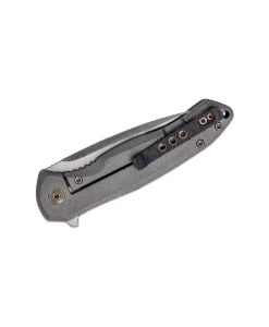 Deployment is a breeze thanks to caged ceramic ball bearings that guarantee a buttery-smooth flick every time. The robust frame lock secures the blade firmly in place, giving you the peace of mind to apply full pressure without worry. When not in use, the ambidextrous flamed-titanium pocket clip ensures discreet, tip-up carry on either side—always within reach but never in the way. Its understated gray finish pairs effortlessly with any attire, while the subtly flamed clip adds a dash of personality that’s sure to draw compliments from fellow knife enthusiasts.