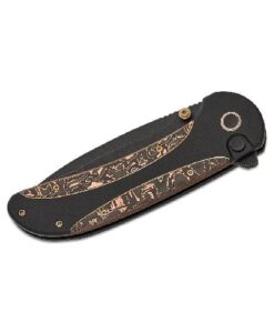 The handle of the Zizzit is constructed from 6Al4V titanium and features copper foil carbon fiber inlays, combining ergonomic comfort with a striking visual design. The combination of premium materials ensures the handle is both lightweight and strong, providing a secure grip for extended use. The Zizzit also features caged ceramic ball bearings for smooth deployment and reliable locking, making it a standout addition to any knife collection. It’s not just a tool but a versatile piece that balances performance and elegance.