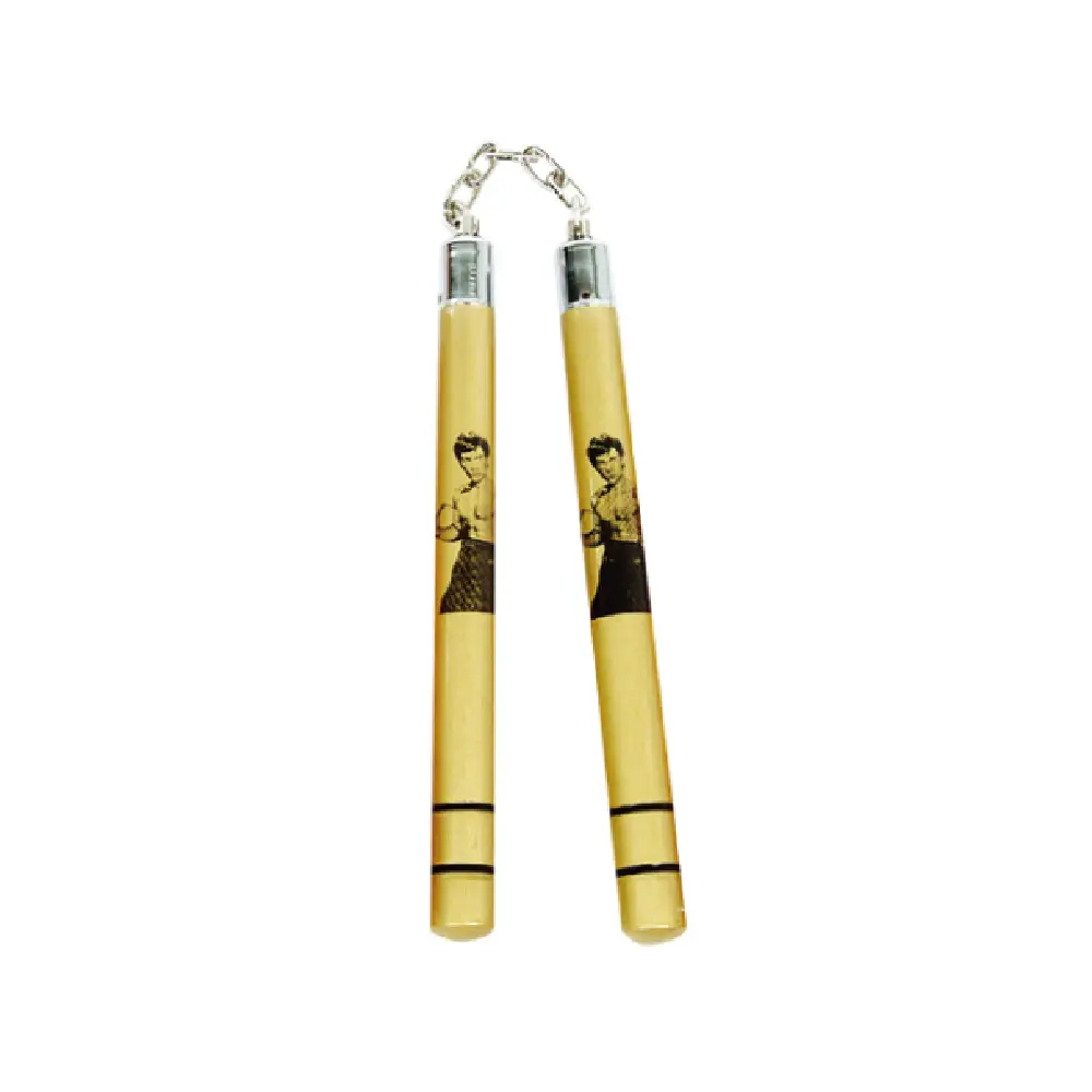 Crafted from high-quality wood and finished in a striking gold tone, this round chaku exudes sophistication and style. The addition of the Bruce Lee motif adds a touch of inspiration and pays tribute to the martial arts icon.